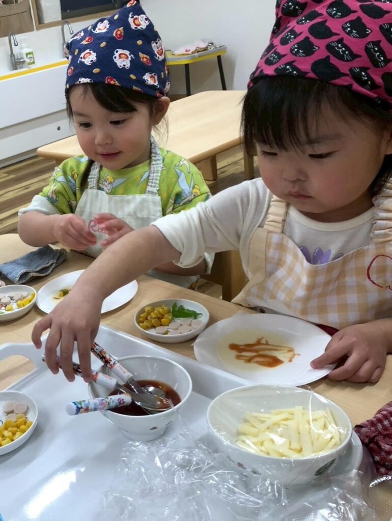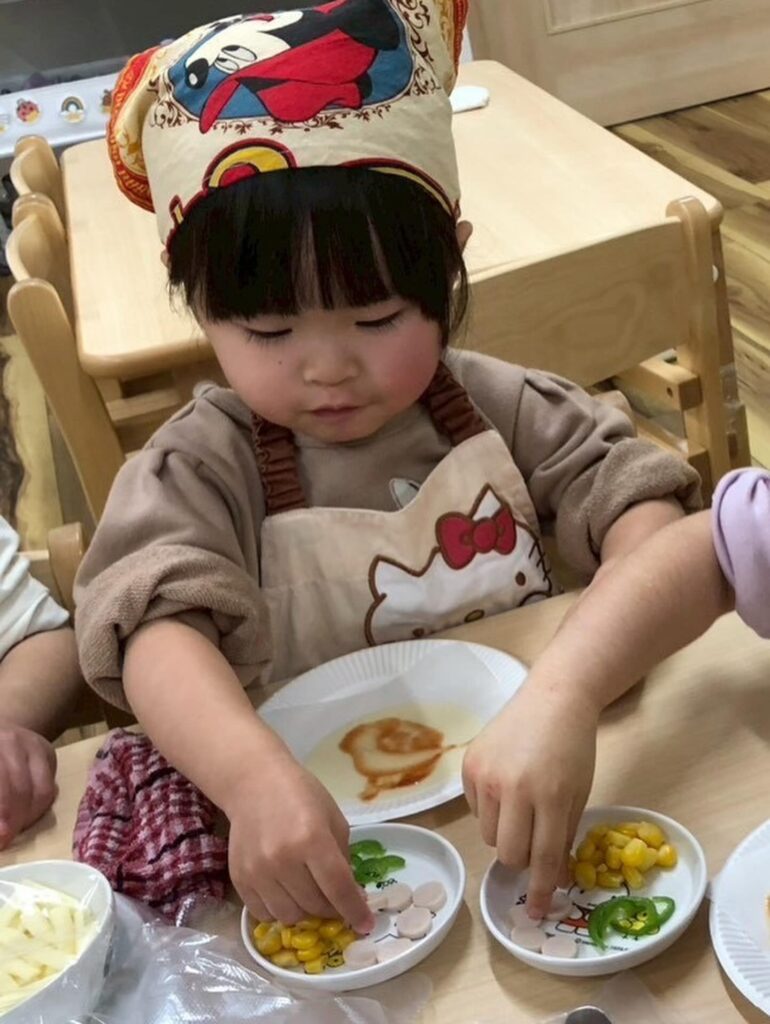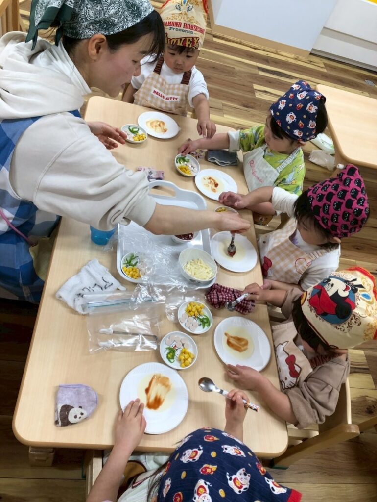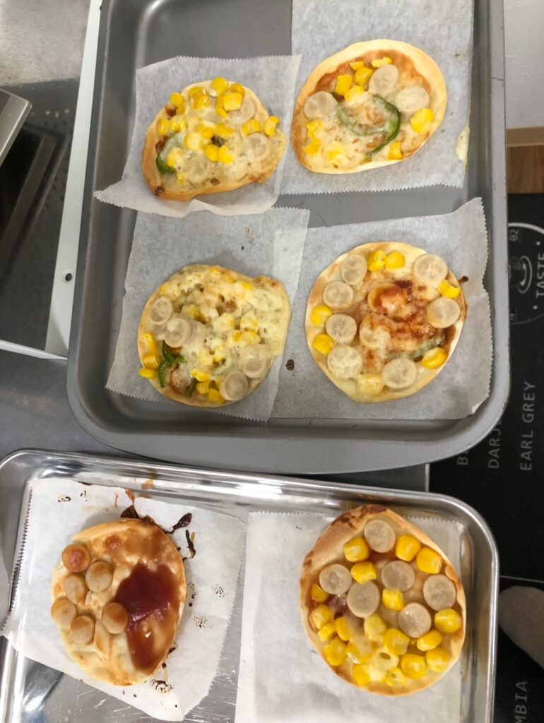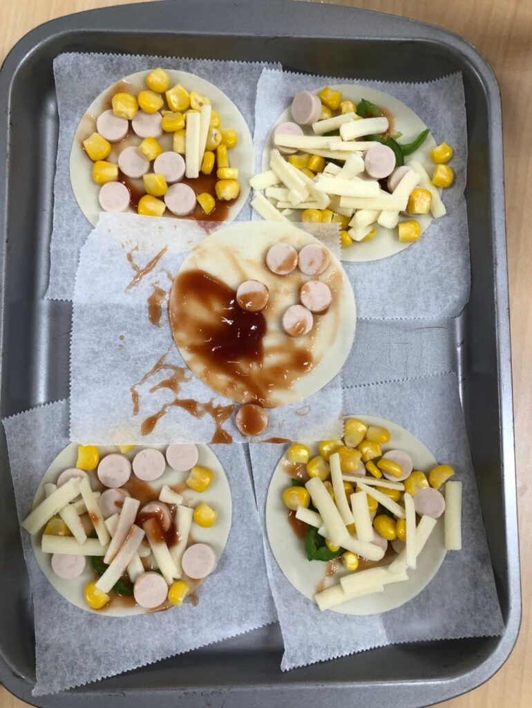 食育の一環で餃子の皮でピザを作りました🍕